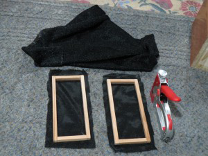 黒いラメ入りの少し伸びる布を買ってきてましたので、これを使って布枠を作ります。かみさんと布生地屋さんを下通り(熊本の繁華街)ではしごして見つけました、これはスピーカーにぴったりでした。