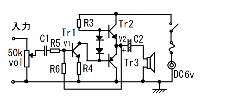そうはいってもトランジスタアンプの音も捨てたもんではありません、上の3石1段増幅アンプの音も悪くはないですが、次の2段増幅アンプと比べるとやはり音に余裕がないというか、なんかの拍子に音がひずんで聞こえることがあります。のびのび感がないというか、悪くはないですが十分ではないです。