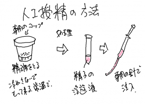 人工授精(AIH; artificia insemination by husband もしくはIUI; intra uterine insemination)