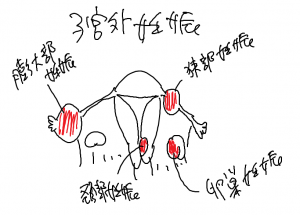 クラミジアなどに感染したことがあると卵管炎を起こしていることがあります。卵管炎は子宮外妊娠の大きな原因の一つです。受精卵が卵管に着床してしまうのは卵管の内膜が炎症で障害を受けて受精卵の移動がうまくいかず(受精卵は自分では動けないので卵管内膜の繊毛(せんもう)という小さな毛のような物がゆっくり受精卵を動かしているのです)卵管内で大きくなり、着床してしまうためと考えられています。